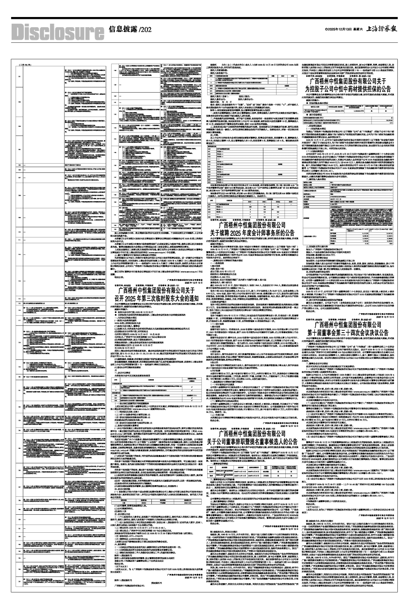 2025年12月12日,广西梧州中恒集团股份有限公司(以下简称“公司”或“中恒集团”)第十届董事会第三十四次会议审议通过《广西梧州中恒集团股份有限公司关于续聘2025年度会计师事务所的议案》,公司拟续聘信永中和作为公司2025年度财务报表及内部控制审计机构,该事项尚需提交公司股东大会审议。具体情况公告如下: