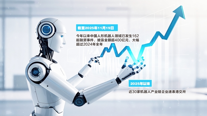 公开数据显示,截至2025年11月19日,今年以来中国人形机器人领域已发生162起融资事件,披露金额超400亿元,大幅超过2024年全年。2025年以来,有近30家机器人产业链企业递表港交所。