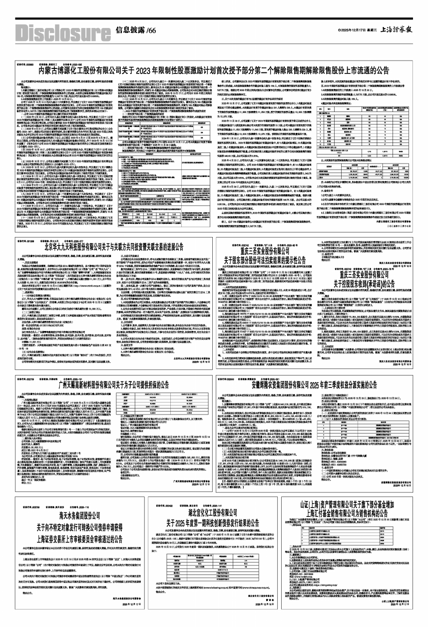 内蒙古博源化工股份有限公司关于2023年限制性股票激励计划首次授予部分第二个解除限售期解除限售股份上市流通的公告