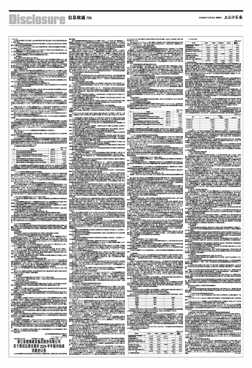 浙江省围海建设集团股份有限公司(以下简称“公司”、“上市公司”或“围海股份”)董事会于2025年5月12日收到深圳证券交易所上市公司管理一部下发的《关于对浙江省围海建设集团股份有限公司2024年年报的问询函》(公司部年报问询函〔2025〕第121号)(以下简称“问询函”),要求公司就相关事项做出书面说明,并将有关说明材料报送深圳证券交易所上市公司管理部,同时抄送宁波证监局。公司收到问询函后高度重视,积极组织相关人员对《问询函》所涉事项逐一核实,形成书面说明并披露如下:
