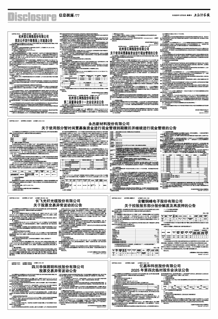 公司股票价格于2025年12月17日至2025年12月19日连续三个交易日收盘价格涨幅偏离值累计超过20%,股价波动幅度较大。敬请广大投资者注意二级市场交易风险,理性决策,审慎投资。