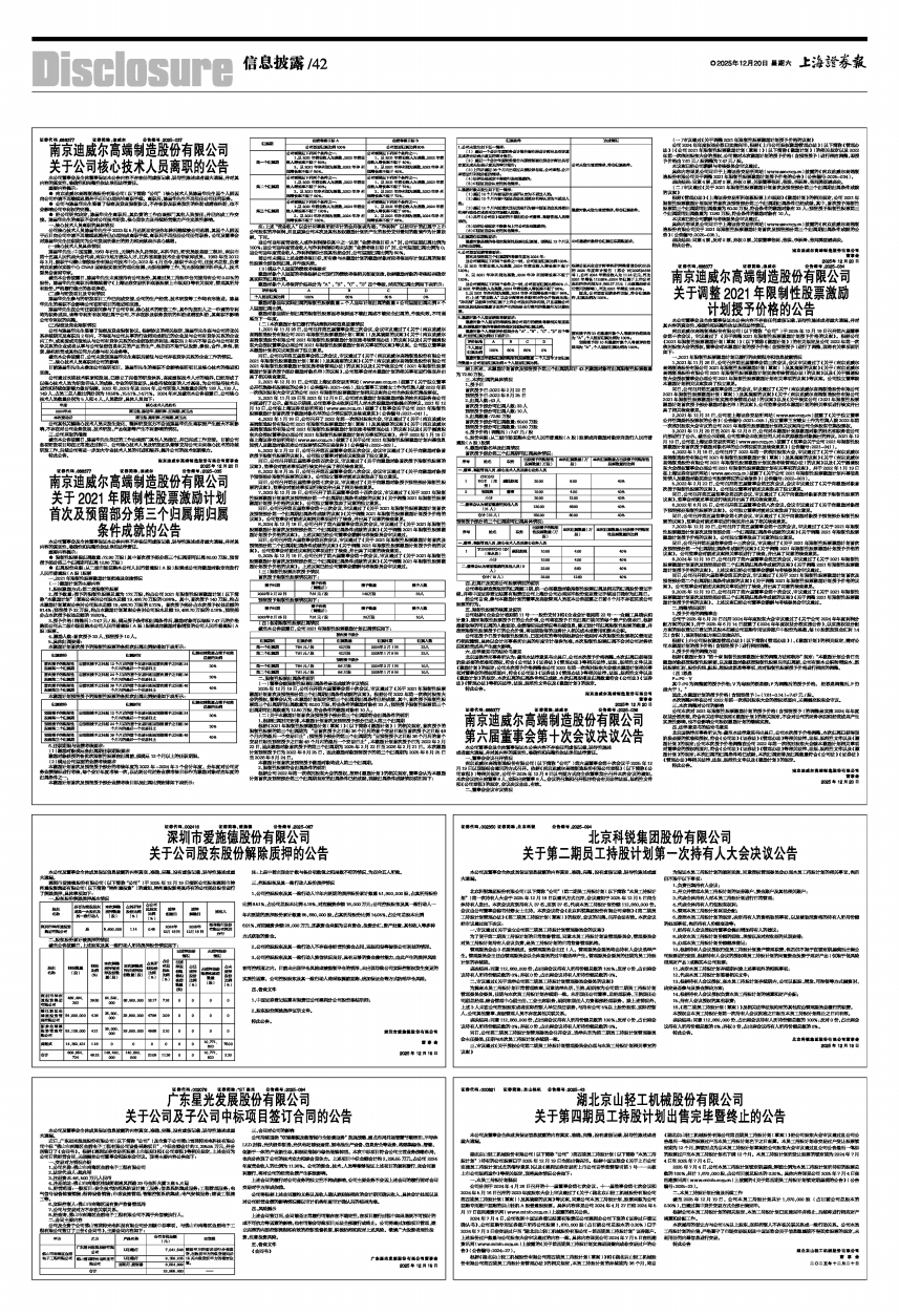 南京迪威尔高端制造股份有限公司(以下简称 “公司”)于2025年12月19日召开第六届董事会第十次会议,审议通过了《关于调整2021年限制性股票激励计划授予价格的议案》。根据公司《2021年限制性股票激励计划(草案)》(以下简称《激励计划》)的有关规定及公司2022年第一次临时股东大会的授权,董事会对本激励计划的授予价格(含预留授予)进行了调整,现将有关事项说明如下: