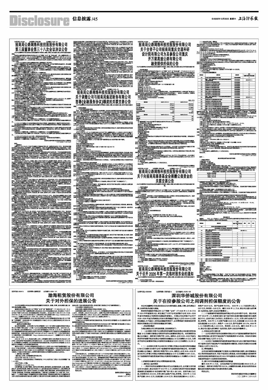 2025年12月18日,经友好协商,公司、天津渤海与皖江金租签署《补充协议》,约定将上述租赁资产收益权转让项目剩余本金1亿元支付期限展期至2026年12月29日,公司继续为天津渤海上述业务提供连带责任保证担保,并以持有的天津渤海3.5亿元股权为天津渤海上述业务提供质押担保。