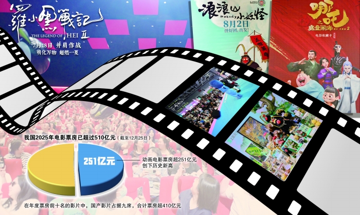 截至12月25日,动画电影票房已超251亿元,创下历史新高,占据全年总票房的近半壁江山,从“儿童专属”的银幕“配菜”,升级为撬动市场的核心力量。