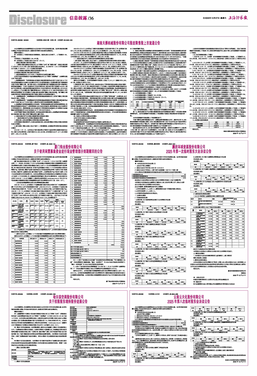 证券代码:600202 证券简称:哈空调 公告编号:临2025-063