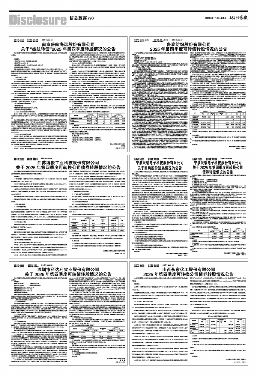 根据《深圳证券交易所股票上市规则》、《深圳证券交易所上市公司自律监管指引第15号一一可转换公司债券》的有关规定,山西永东化工股份有限公司(以下简称“公司”)现将2025年第四季度“永东转2”转股及公司股份变动情况公告如下: