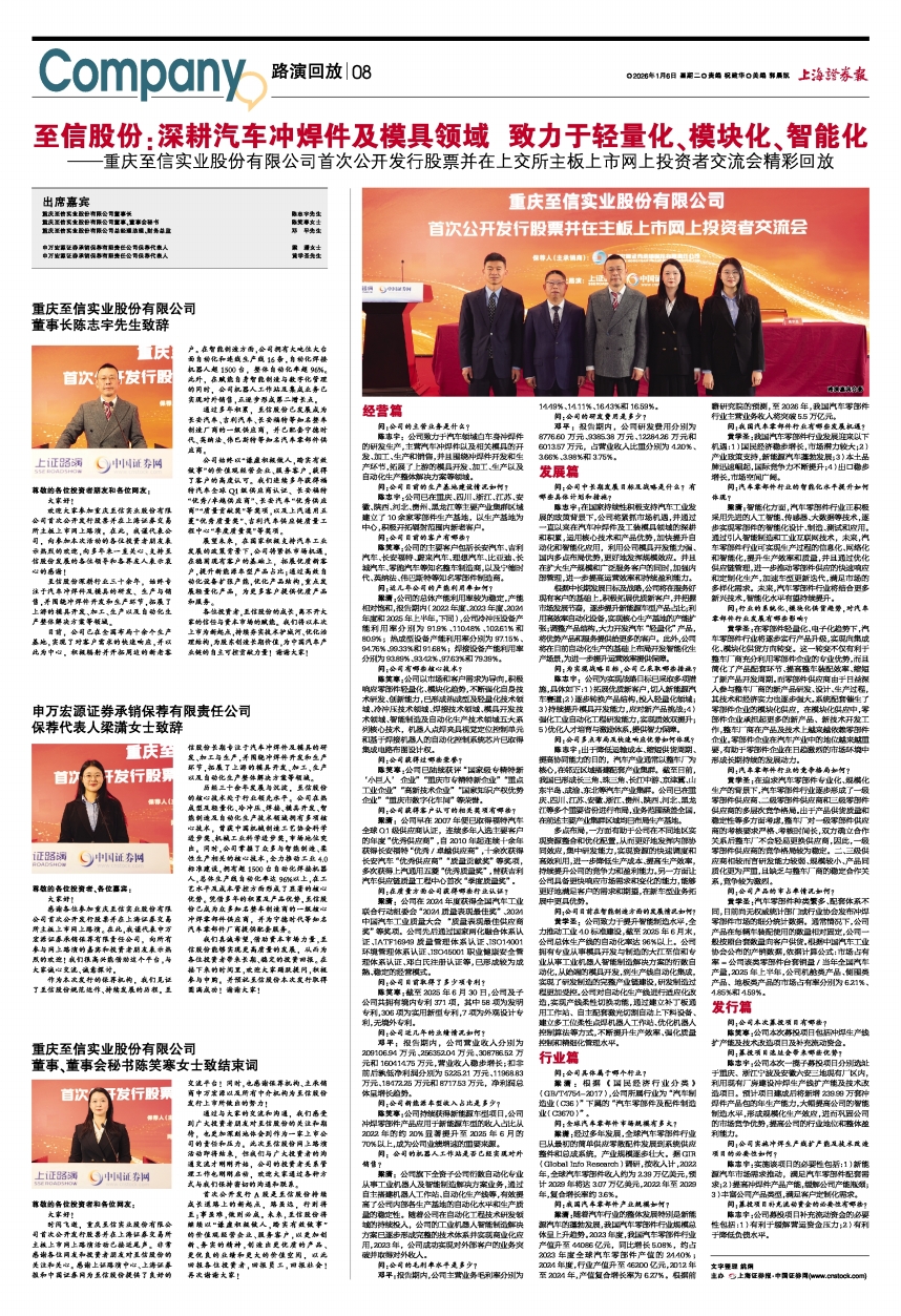 各位投资者,至信股份的成长,离不开大家的信任与资本市场的赋能。我们将以本次上市为新起点,持续夯实技术护城河、优化治理结构,为股东创造长期价值,为中国汽车产业链的自主可控贡献力量!谢谢大家!