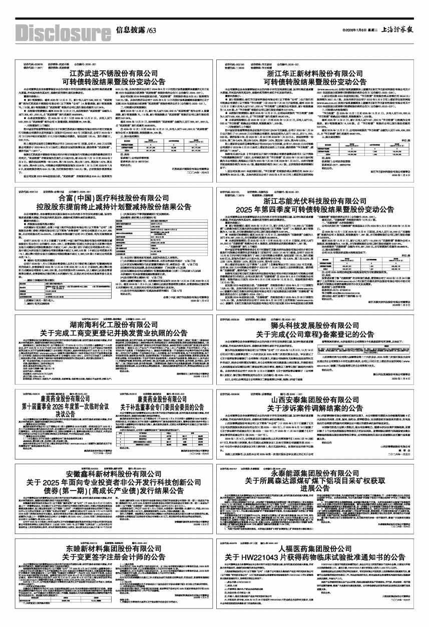 2025年第四季度可转债转股结果暨股份变动公告 -
