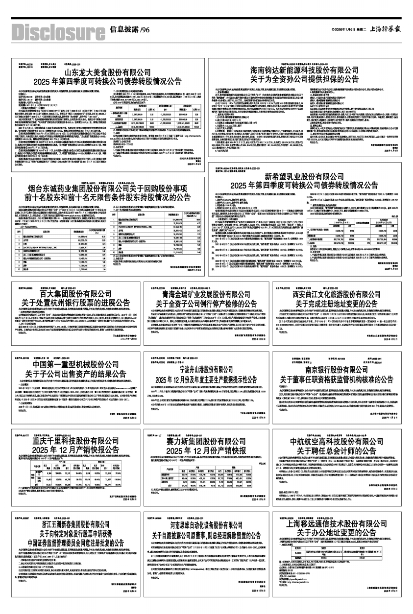 2025年12月产销快报公告 -