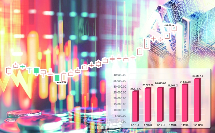 1月12日,A股市场延续涨势,主要指数全线收高。沪深北三市昨日成交额超3.64万亿元,连续第2个交易日突破3万亿元,较上个交易日放量4922亿元,刷新2024年10月8日创下的成交额历史纪录(3.49万亿元)。盘面上,全市场超4100只个股上涨,市场资金聚焦AI应用与商业航天两大题材。