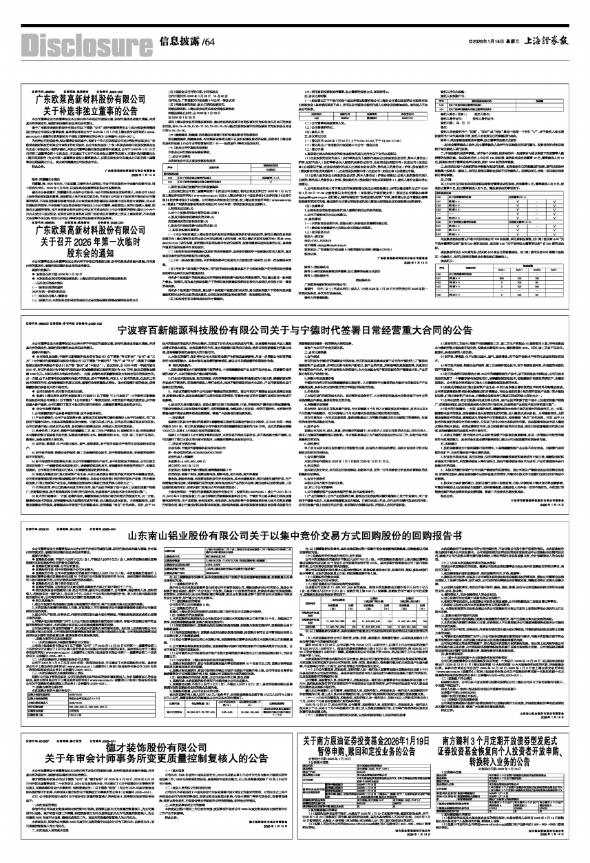 证券代码:600219 证券简称:南山铝业 公告编号:2026-004