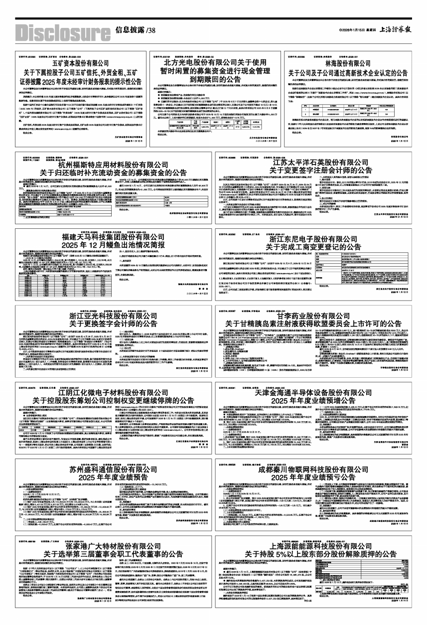 证券披露2025年度未经审计财务报表的提示性公告 -