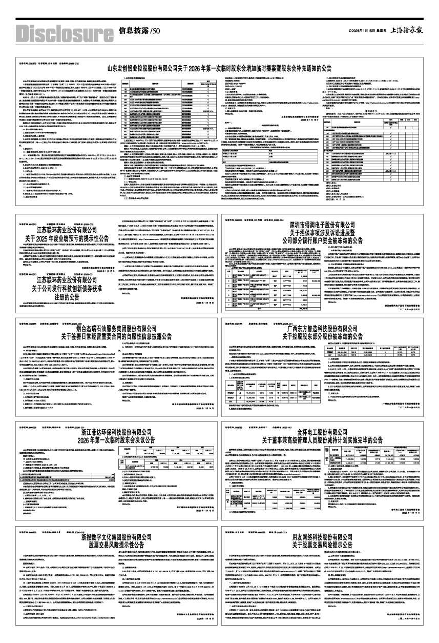 山东宏创铝业控股股份有限公司关于2026年第一次临时股东会增加临时提案暨股东会补充通知的公告