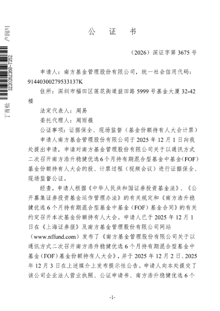 1、《南方基金管理股份有限公司关于以通讯方式二次召开南方浩升稳健优选6个月持有期混合型基金中基金(FOF)基金份额持有人大会的公告》