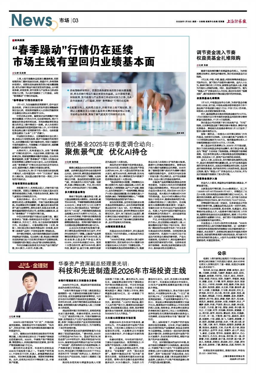 在基金2025年四季报中,多位基金经理谈及了对后市的看法,AI板块成为热议的核心关键词。