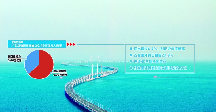 连续40年全国第一 广东2025年进出口规模近10万亿元