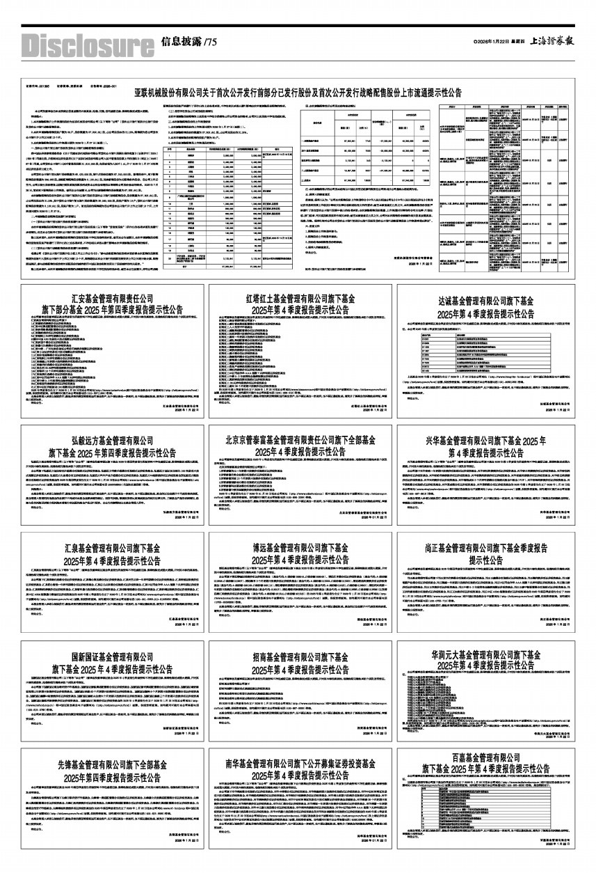 旗下基金2025年第四季度报告提示性公告 -