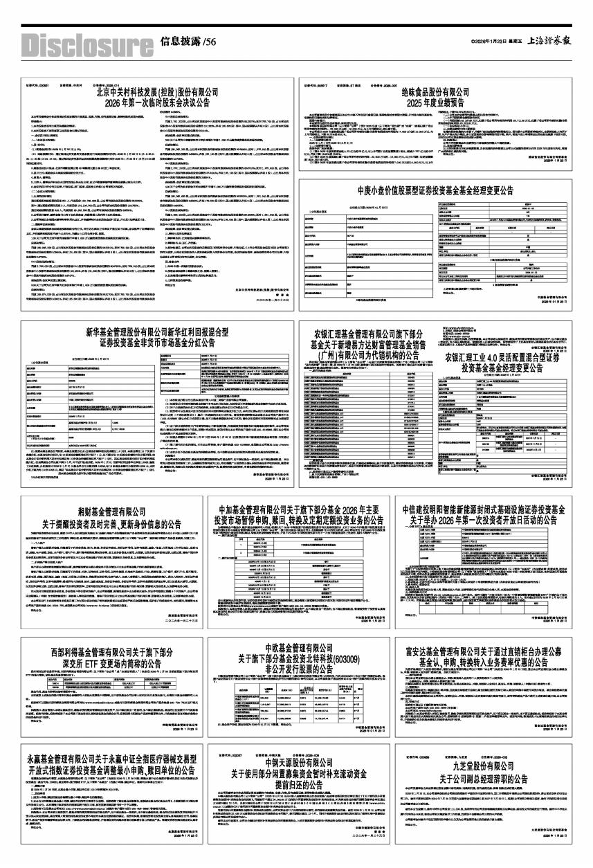 中加基金管理有限公司关于旗下部分基金2026年主要