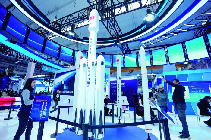 1月23日,观众在2026北京国际商业航天展的星河动力航天展台参观展出的火箭模型。1月23日,以“汇聚全球资源 共促商业航天”为主题的2026北京国际商业航天展览会开幕,本次展会展出面积约2万平方米,展出内容覆盖火箭与运载系统、卫星制造、航天应用、航天服务与配套等领域。新华社图文