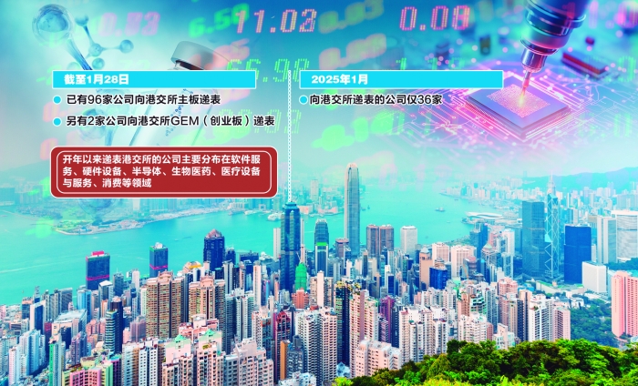 据上海证券报记者初步梳理,截至28日,本月已有96家公司向港交所主板递表,另有2家公司向港交所GEM(创业板)递表。其中,有近20家公司为二次递表或多次递表。2025年1月,向港交所递表的公司仅36家。