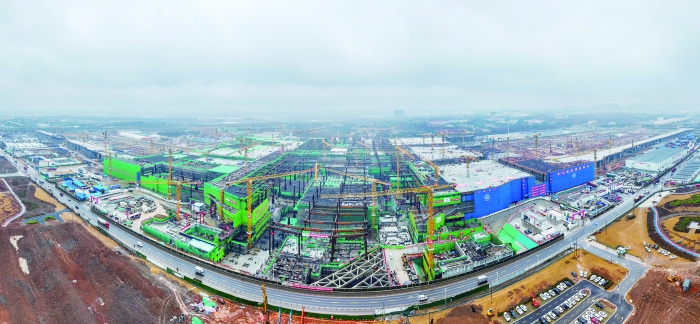 1月30日拍摄的南京北站站房建设现场。1月30日,由中铁建设集团等单位承建的南京北站站房工程正负零以下结构施工全部完成,项目建设全面转入地面主体结构施工阶段。据悉,南京北站总建筑面积约69.21万平方米,采用地上四层、地下两层的立体布局,站场规模为16台30线,是集高速铁路、城际铁路、普速铁路于一体的综合性铁路客站。南京北站枢纽建设,将进一步完善南京铁路枢纽布局,对打造“轨道上的长三角”、推动长江经济带高质量发展、提升南京都市圈中心城市辐射能力等具有重要意义。新华社图文