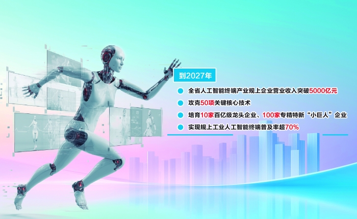 浙江正持续加码人工智能产业布局。日前,浙江省经信厅等五部门联合发布《浙江省推进人工智能终端产业发展行动计划》(下称《行动计划》),明确提出到2027年,全省人工智能终端产业规上企业营业收入突破5000亿元,同时攻克50项关键核心技术,培育10家百亿级龙头企业、100家专精特新“小巨人”企业,实现规上工业人工智能终端普及率超70%等一系列量化发展目标。
