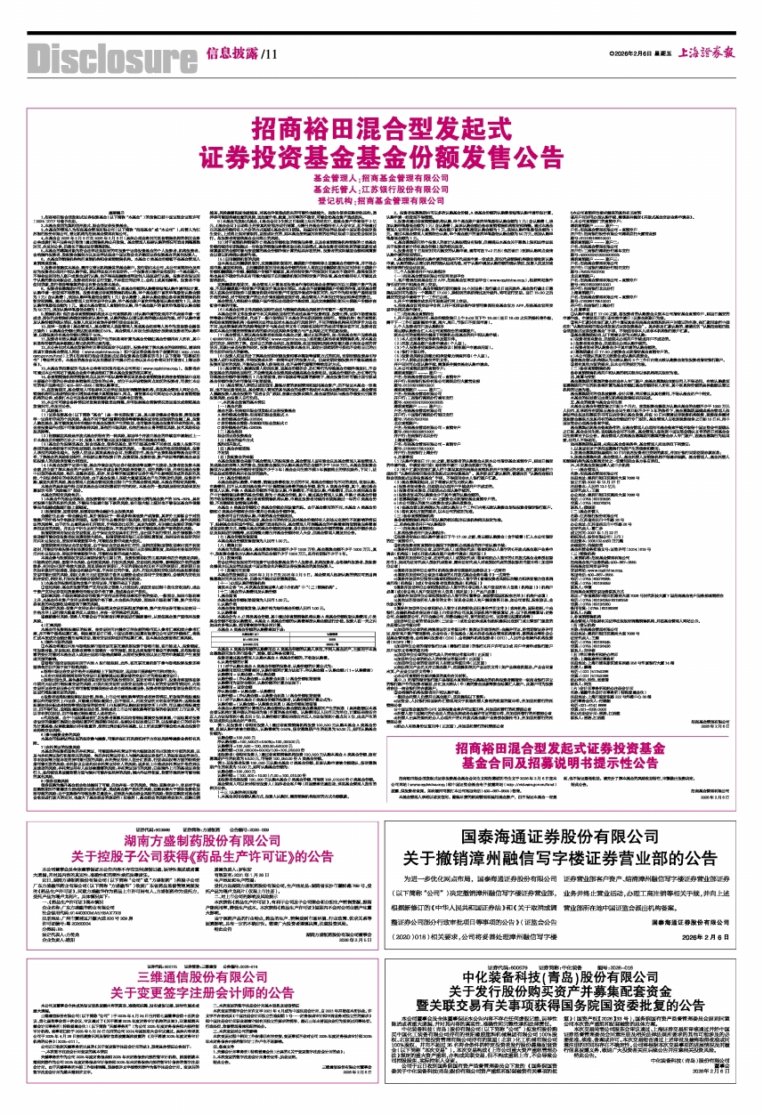 招商裕田混合型发起式证券投资基金基金合同全文和招募说明书全文于2026年2月6日在本公司网站(www.cmfchina.com)和中国证监会基金电子披露网站(http://eid.csrc.gov.cn/fund)披露,供投资者查阅。如有疑问可拨打本公司客服电话(400-887-9555)咨询。