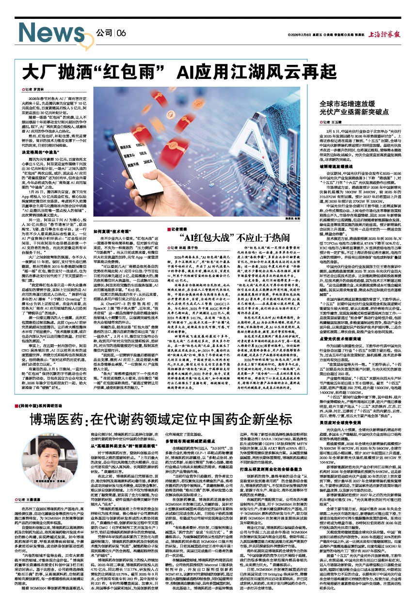 2月5日,中国光伏行业协会于北京举办“光伏行业2025年发展回顾与2026年形势展望研讨会”。上海证券报记者在现场了解到,“十五五”时期,全球与中国光伏新增装机增速预计均明显放缓。晶硅光伏技术在进一步提升的同时,也将逼近极限,使得降本提效带来的边际收益减少。光伏企业须直面高质量发展挑战,寻求新的突破点。