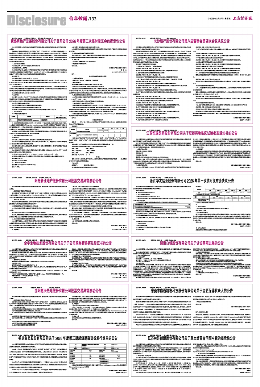 荣盛房地产发展股份有限公司关于召开公司2026年度第三次临时股东会的提示性公告