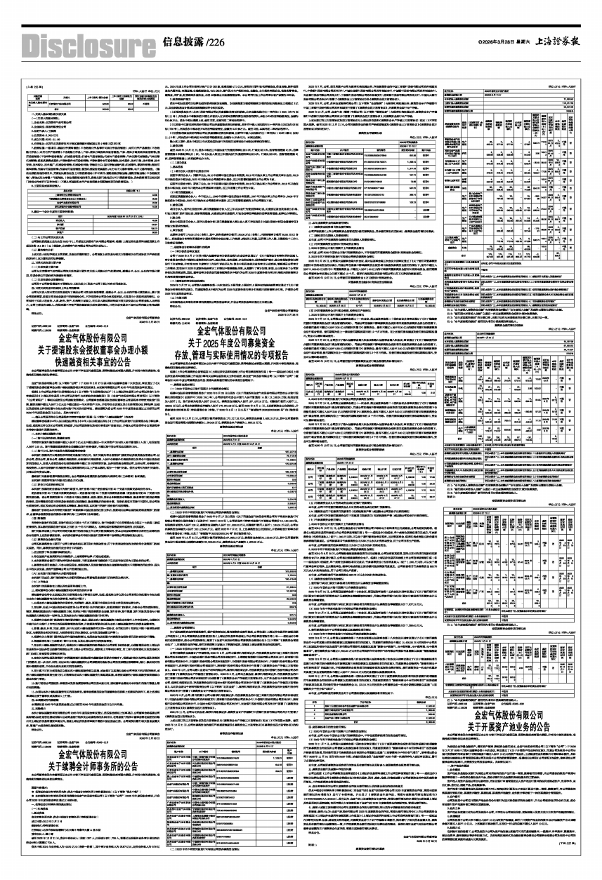 信永中和会计师事务所(特殊普通合伙)对金宏气体《金宏气体股份有限公司2025年度募集资金存放、管理与实际使用情况的专项报告》进行了专项审核,并出具了《募集资金年度存放、管理与实际使用情况鉴证报告》(XYZH/2026SUAA1B0012)。报告认为:金宏气体上述募集资金年度存放、管理与使用情况的专项报告已经按照上海证券交易所相关规定编制,在所有重大方面如实反映了金宏气体2025年度募集资金的实际存放、管理与使用情况。