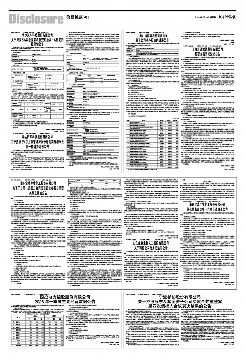 2026年4月15日,华达汽车科技股份有限公司(以下简称“公司”)收到股东张耀坤先生通知,其于2026年4月4日至2026年4月15日通过集中竞价交易的方式,以自有资金累计增持公司无限售流通股4,292,975股,占公司总股本的0.41%,张耀坤先生及其一致行动人浙江臻远合计持有公司股份比例由7.23%增加至8.14%,本次权益变动触及1%的整数倍。。
