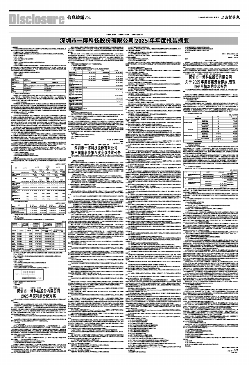 深圳市一博科技股份有限公司2025年年度报告摘要