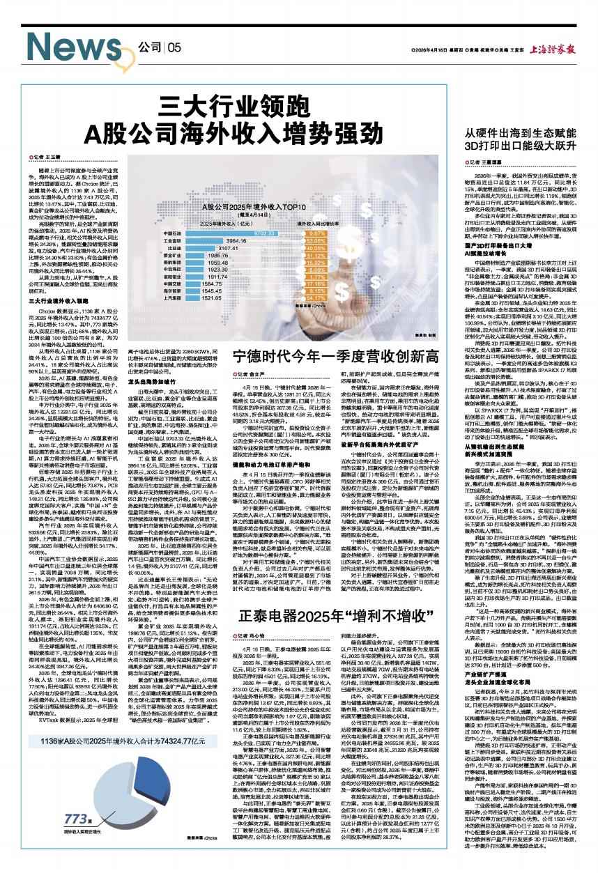 4月15日晚,正泰电器披露2025年年报及2026年一季报。