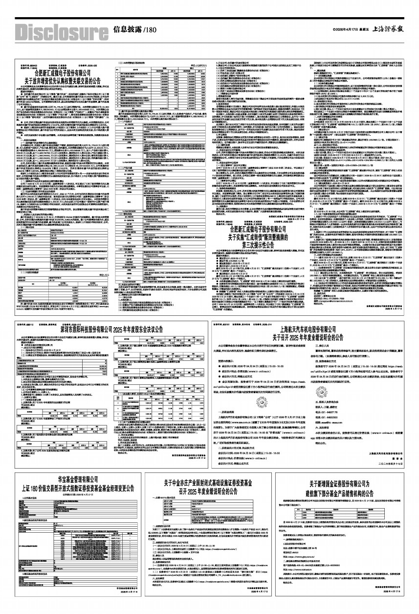 注:鑫丰科技2025年度相关数据已经利安达会计师事务所(特殊普通合伙)审计,并出具利安达审字[2026]第C0139号《审计报告》,详见公司于2026年4月2日在上海证券交易所网站(www.sse.com.cn)披露的《合肥鑫丰科技有限公司2025年度审计报告》。