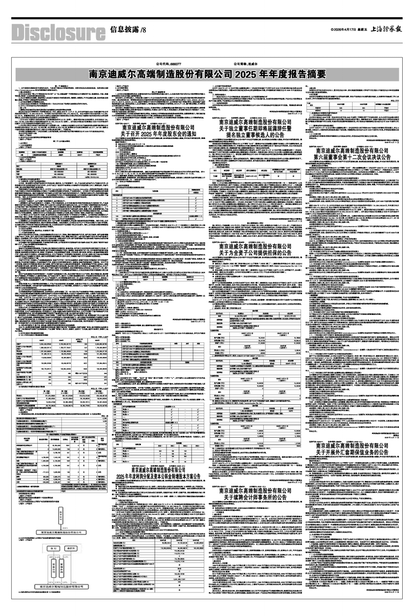 南京迪威尔高端制造股份有限公司2025年年度报告摘要