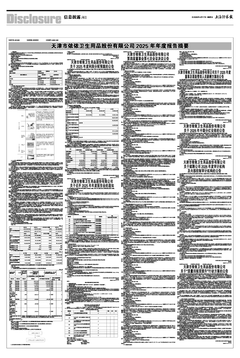 天津市依依卫生用品股份有限公司关于2026年度