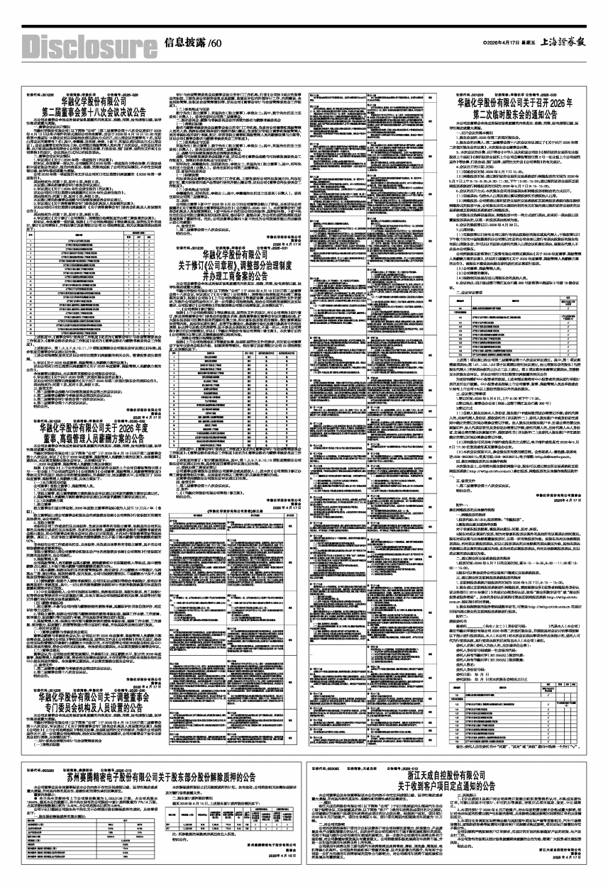 证券代码:301256 证券简称:华融化学 公告编号:2026-033