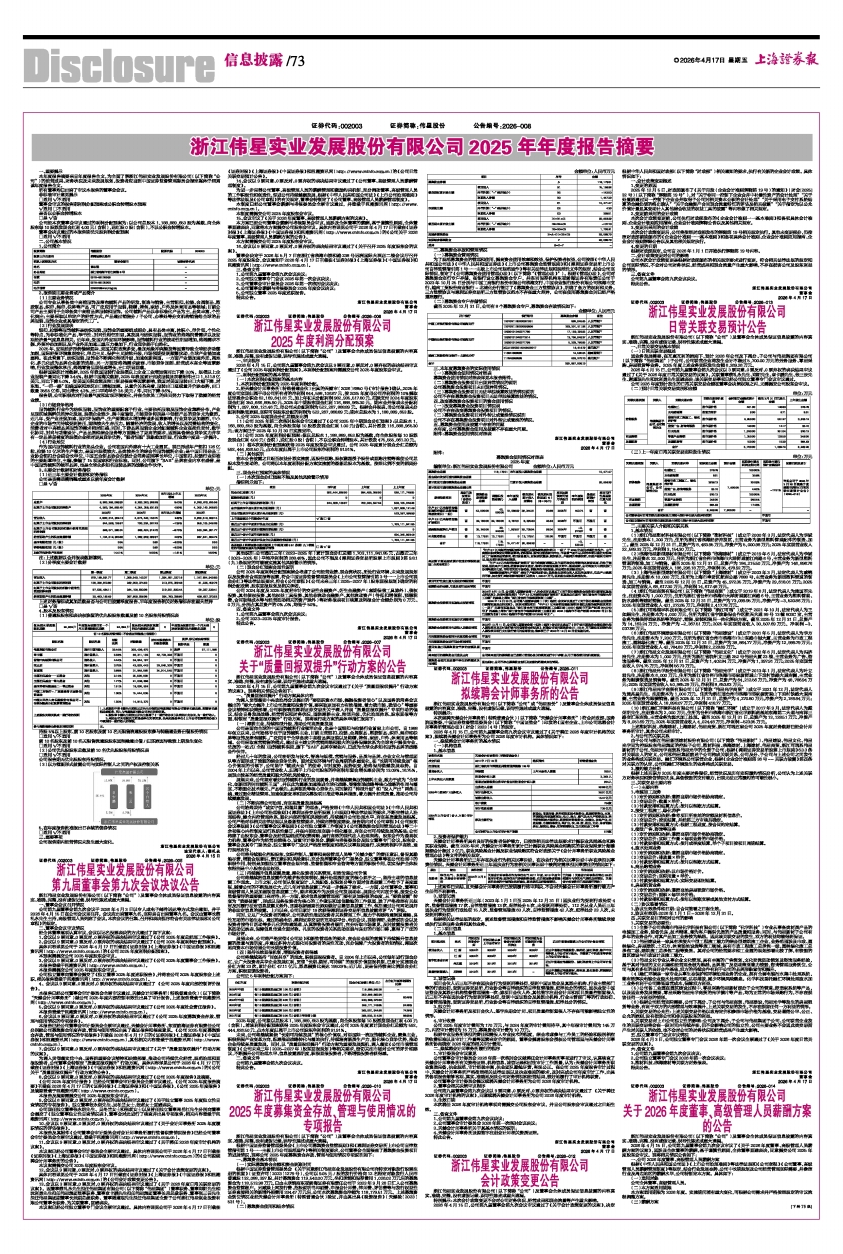 证券代码:002003 证券简称:伟星股份 公告编号:2026-013