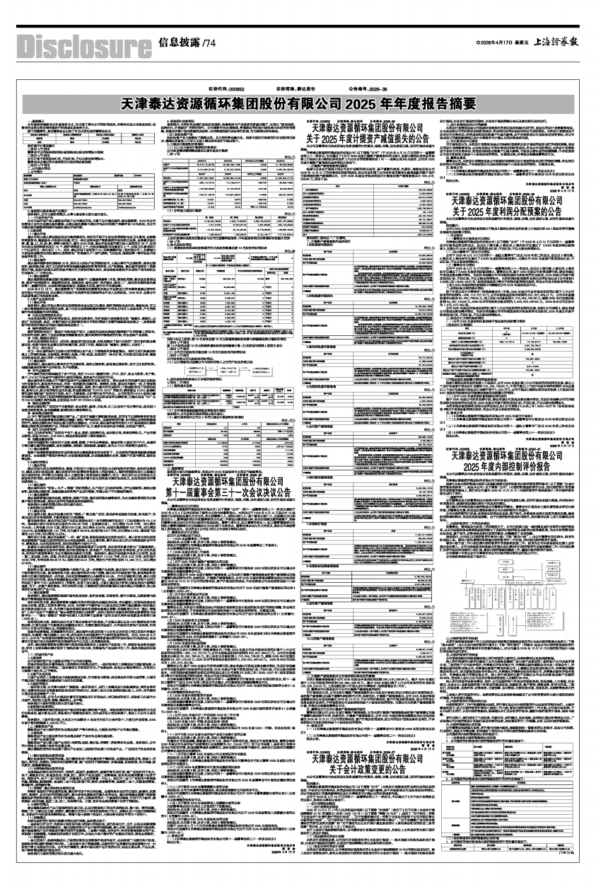 (一)《天津泰达资源循环集团股份有限公司2025年度审计报告》