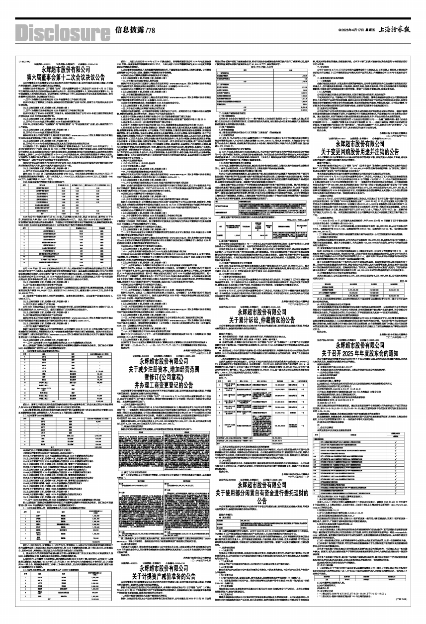 具体内容详见公司同日披露于上海证券交易所网站(www.sse.com.cn)的《永辉超市股份有限公司关于变更回购股份用途并注销的公告》(公告编号:2026-022)。
