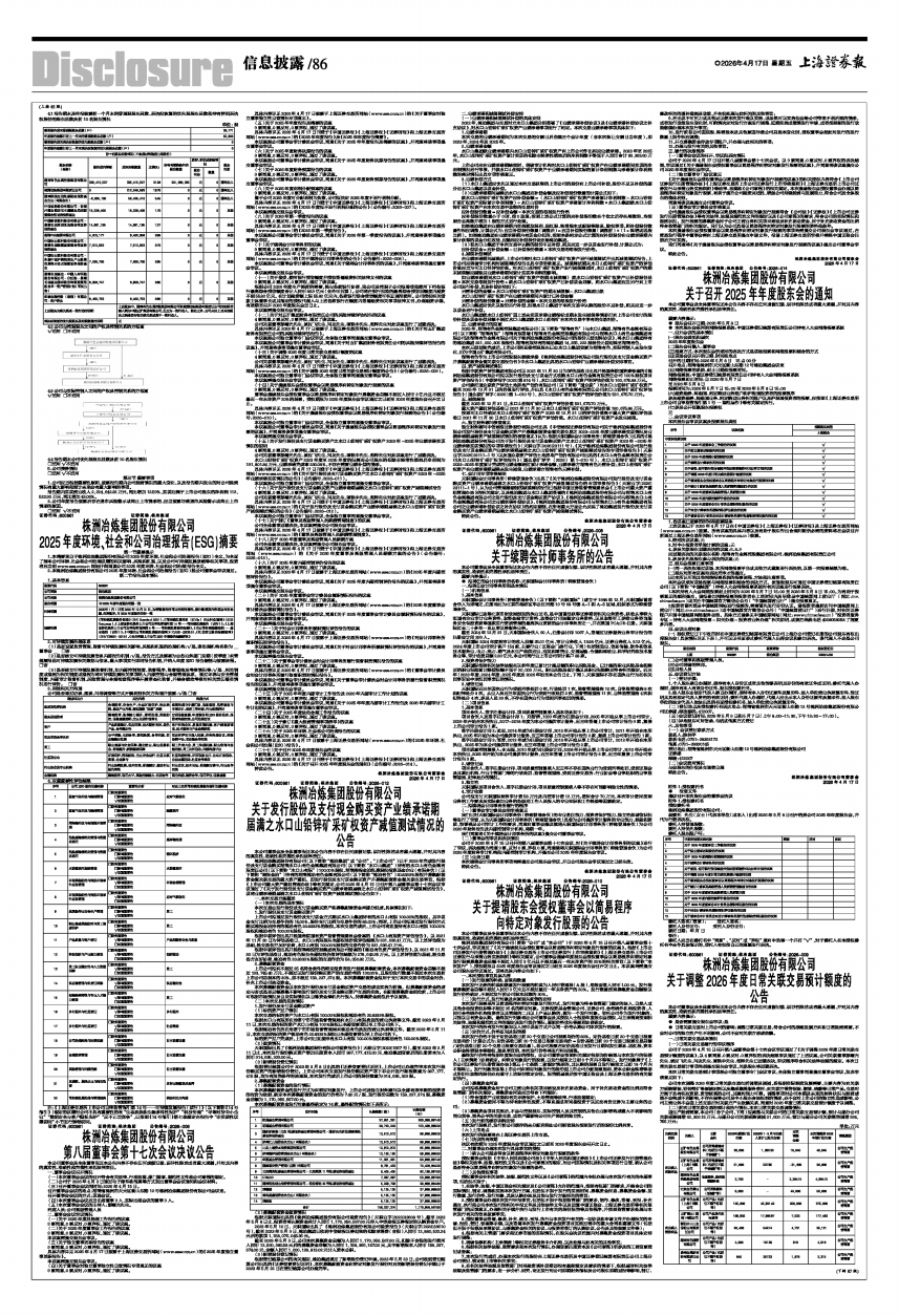 1、本摘要来自于株洲冶炼集团股份有限公司2025年度环境、社会和公司治理报告(ESG)全文,为全面了解本公司环境、社会和公司治理议题的相关影响、风险和机遇,以及公司可持续发展战略等相关事项,投资者应当到www.sse.com.cn网站仔细阅读公司2025年度环境、社会和公司治理]报告全文。
