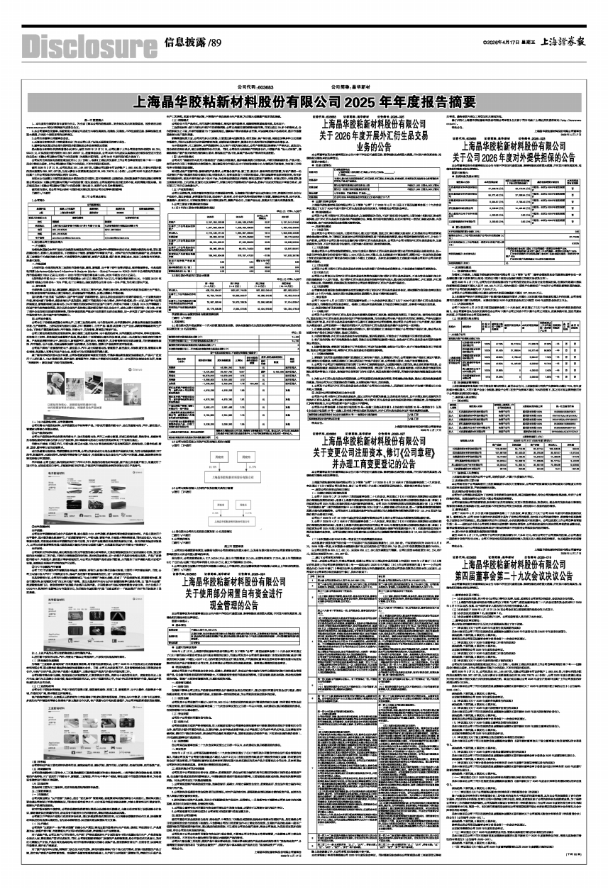 上海晶华胶粘新材料股份有限公司2025年年度报告摘要