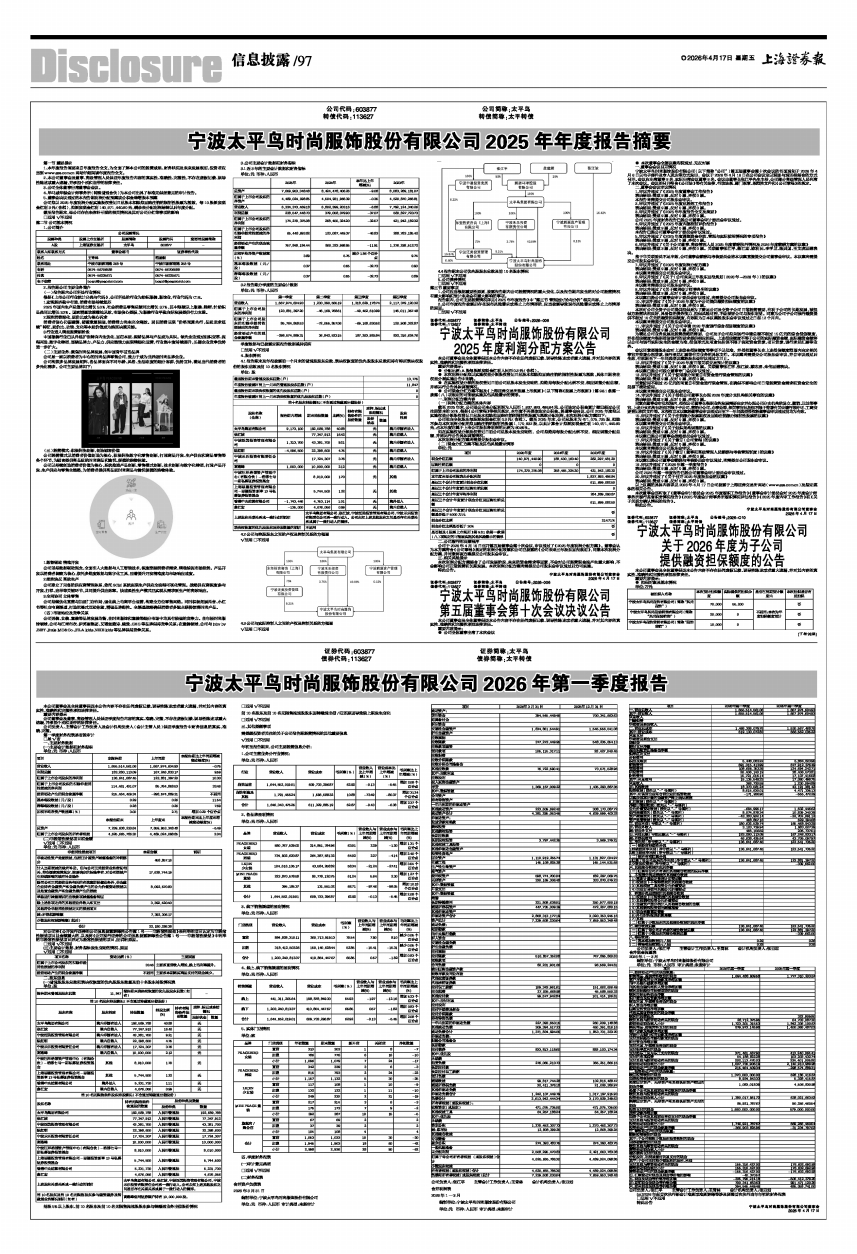 宁波太平鸟时尚服饰股份有限公司2026年第一季度报告