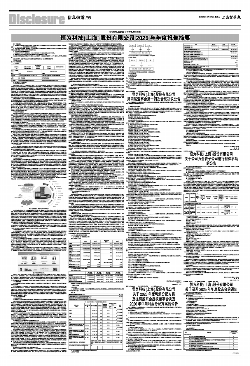 恒为科技(上海)股份有限公司2025年年度报告摘要