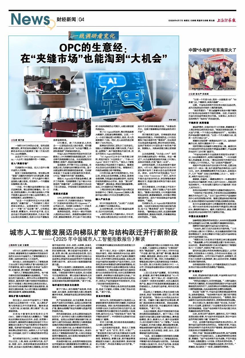 在孔祥郦看来,OPC的意义不仅在于组织形态变化,更在于其融入产业生态的能力。“随着AI技术普及,OPC有望在传统制造业转型、数据要素服务、乡村振兴等领域拓展空间,成为个体实现商业价值的重要载体。”她说。
