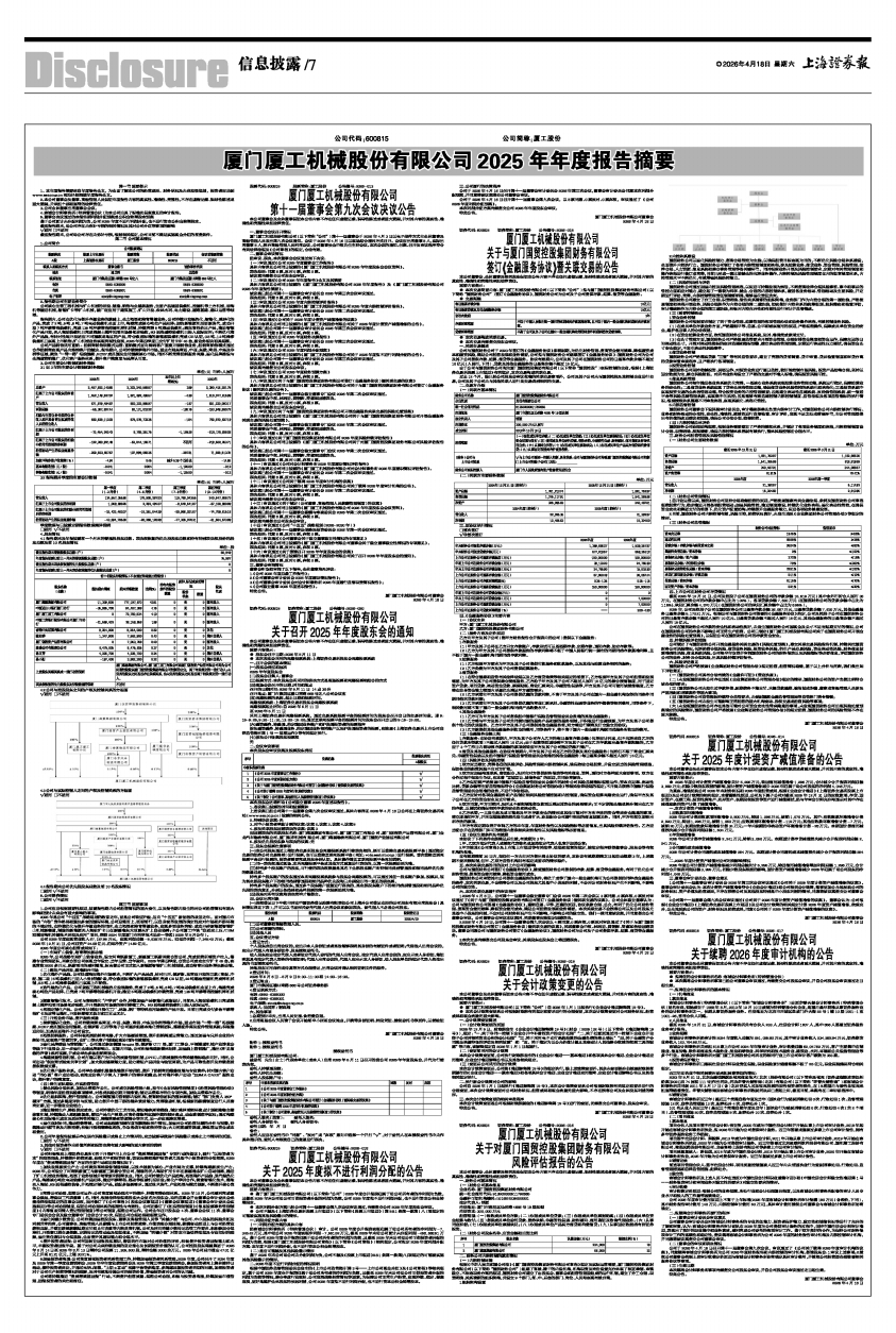 具体内容详见公司同日披露的《厦门厦工机械股份有限公司2025年年度报告》及《厦门厦工机械股份有限公司2025年年度报告摘要》。