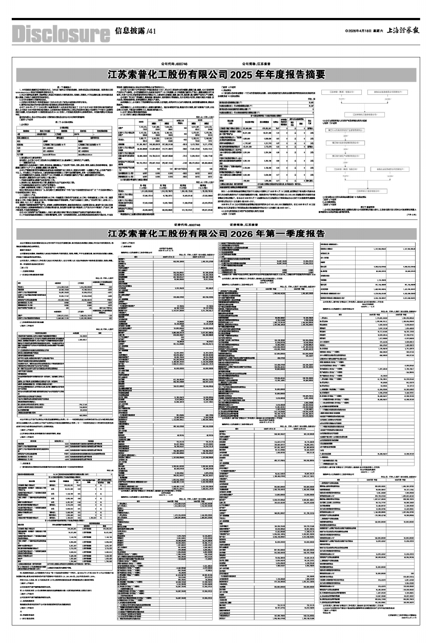 江苏索普化工股份有限公司2025年年度报告摘要