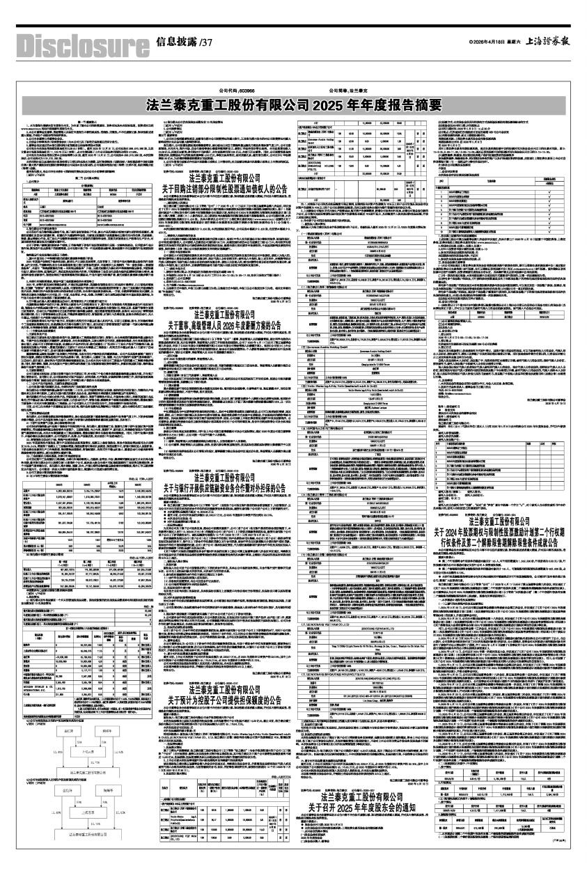 法兰泰克重工股份有限公司2025年年度报告摘要