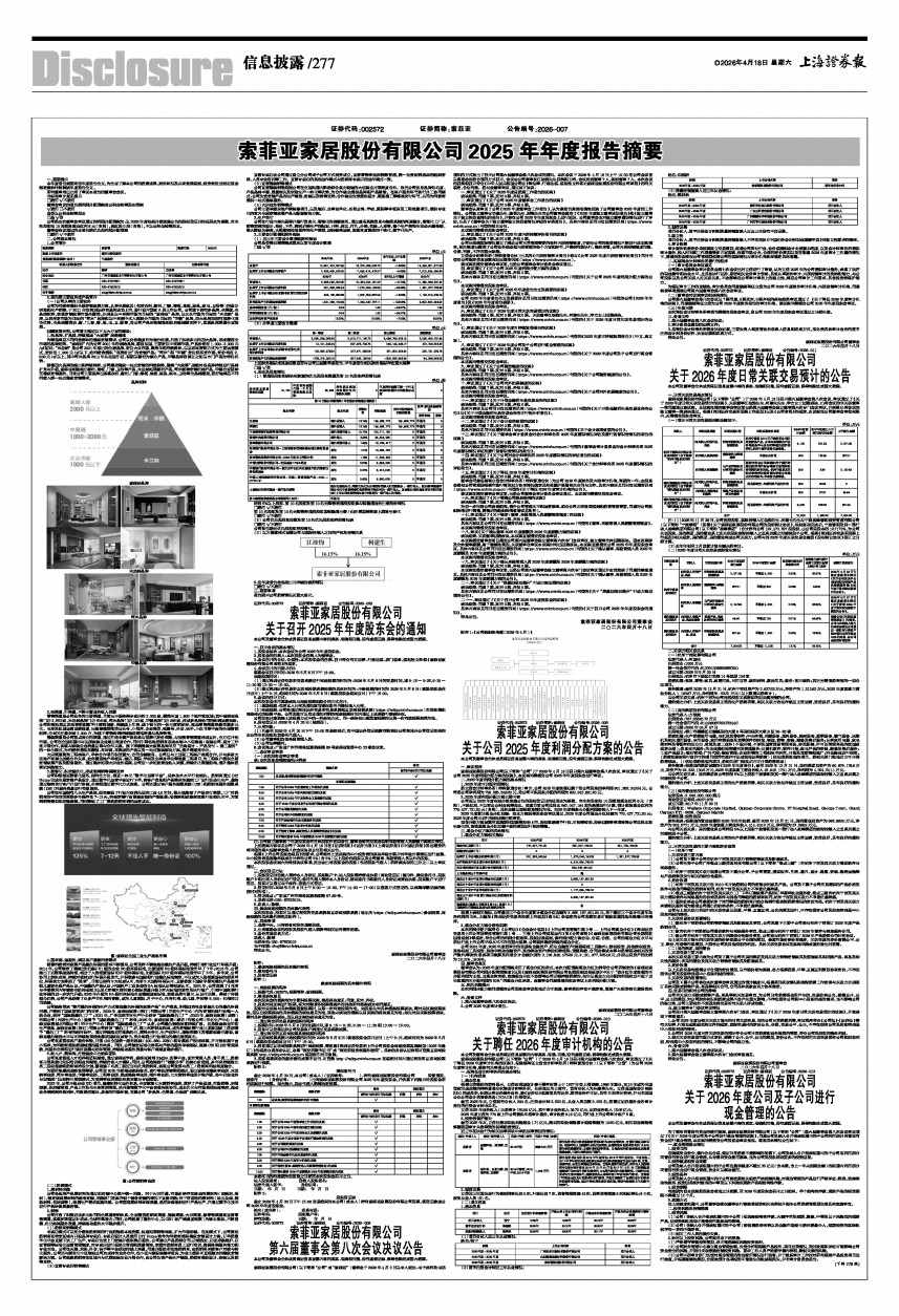 证券代码:002572 证券简称:索菲亚 公告编号:2026-020