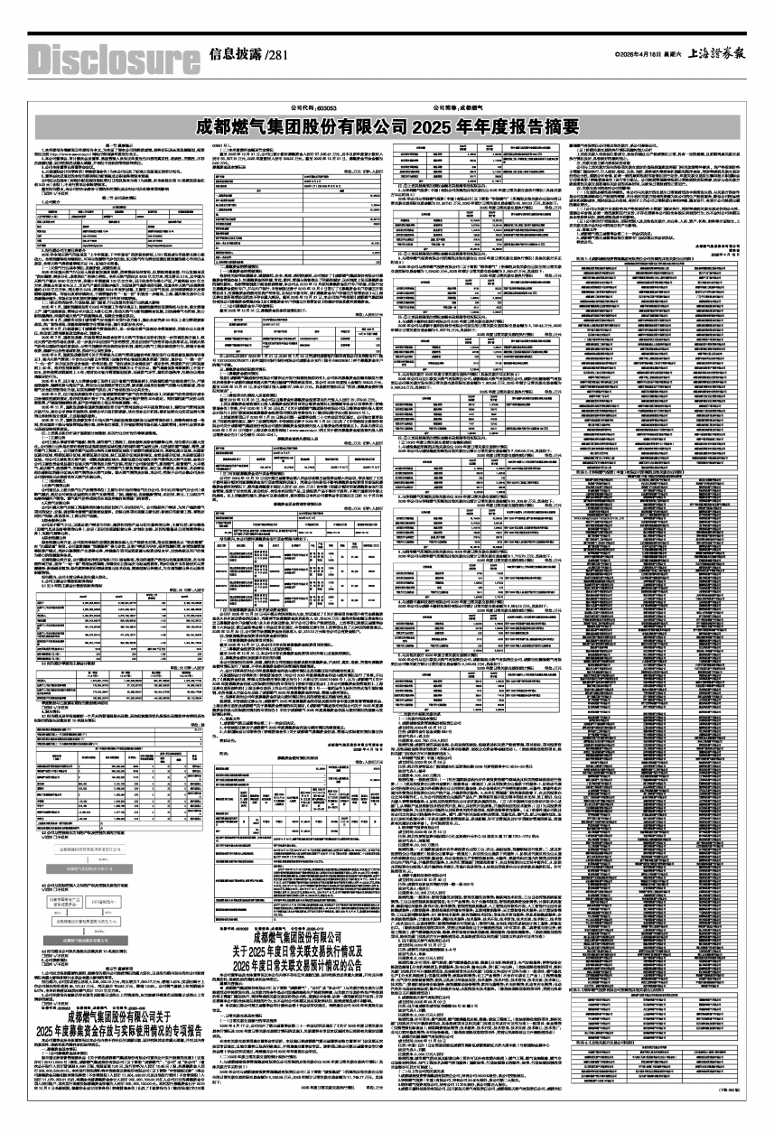 证券代码:603053 证券简称:成都燃气 公告编号:2026-010